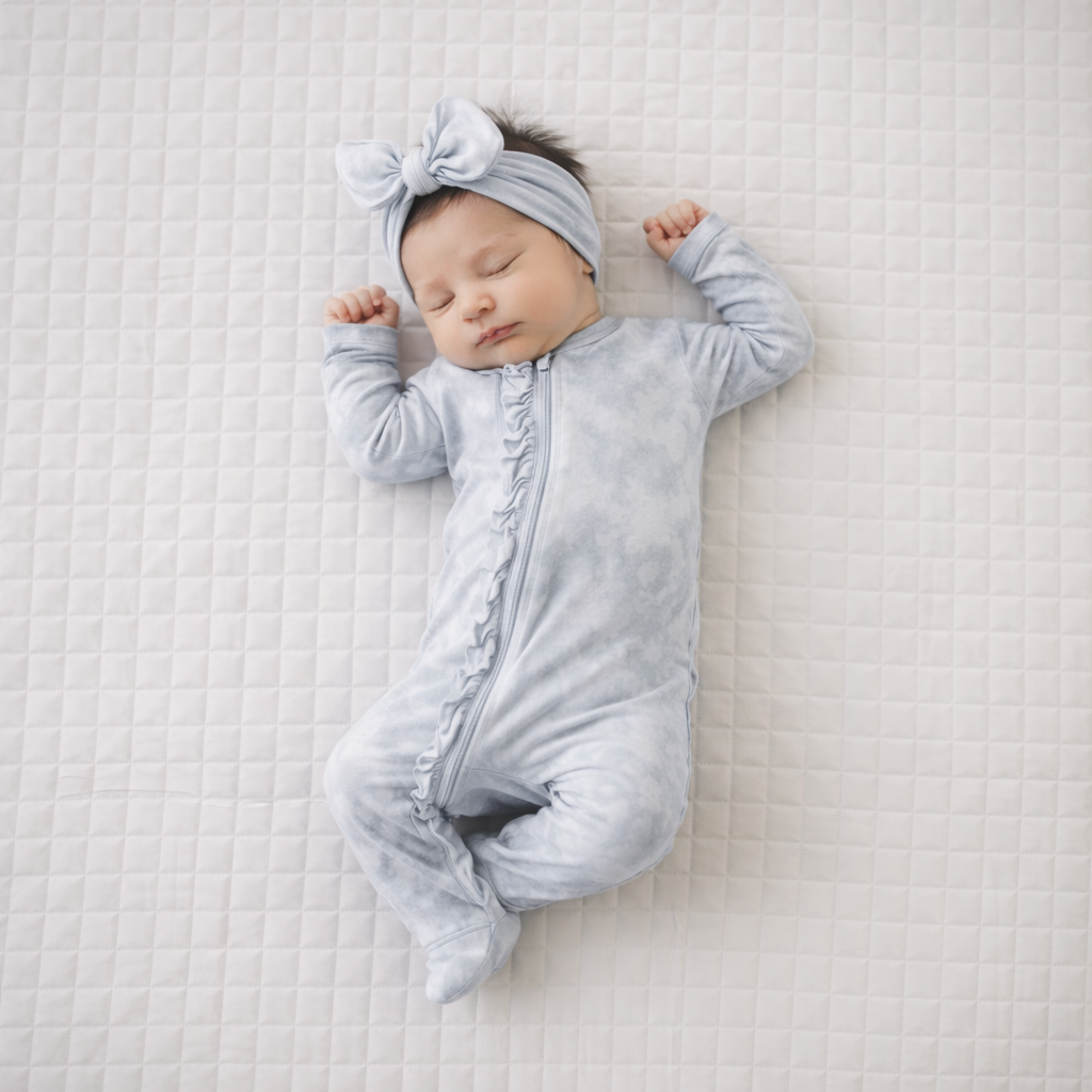 We’ve also made our ruffle onesies in a variety of luscious colors, you’ll want to have them all for your sweet little one. With matching top knot hats and stretchy bow headbands, your baby will be cozy, comfortable and cute as can be!